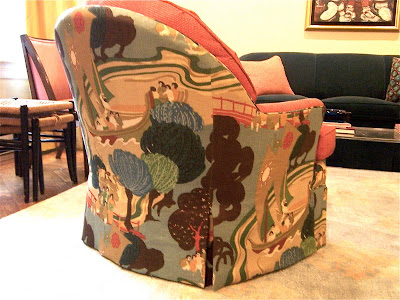 Several weeks, many phone calls, a lot of angst, and 2 additional yards of fabric later, the chairs are at a point where I can accept them.