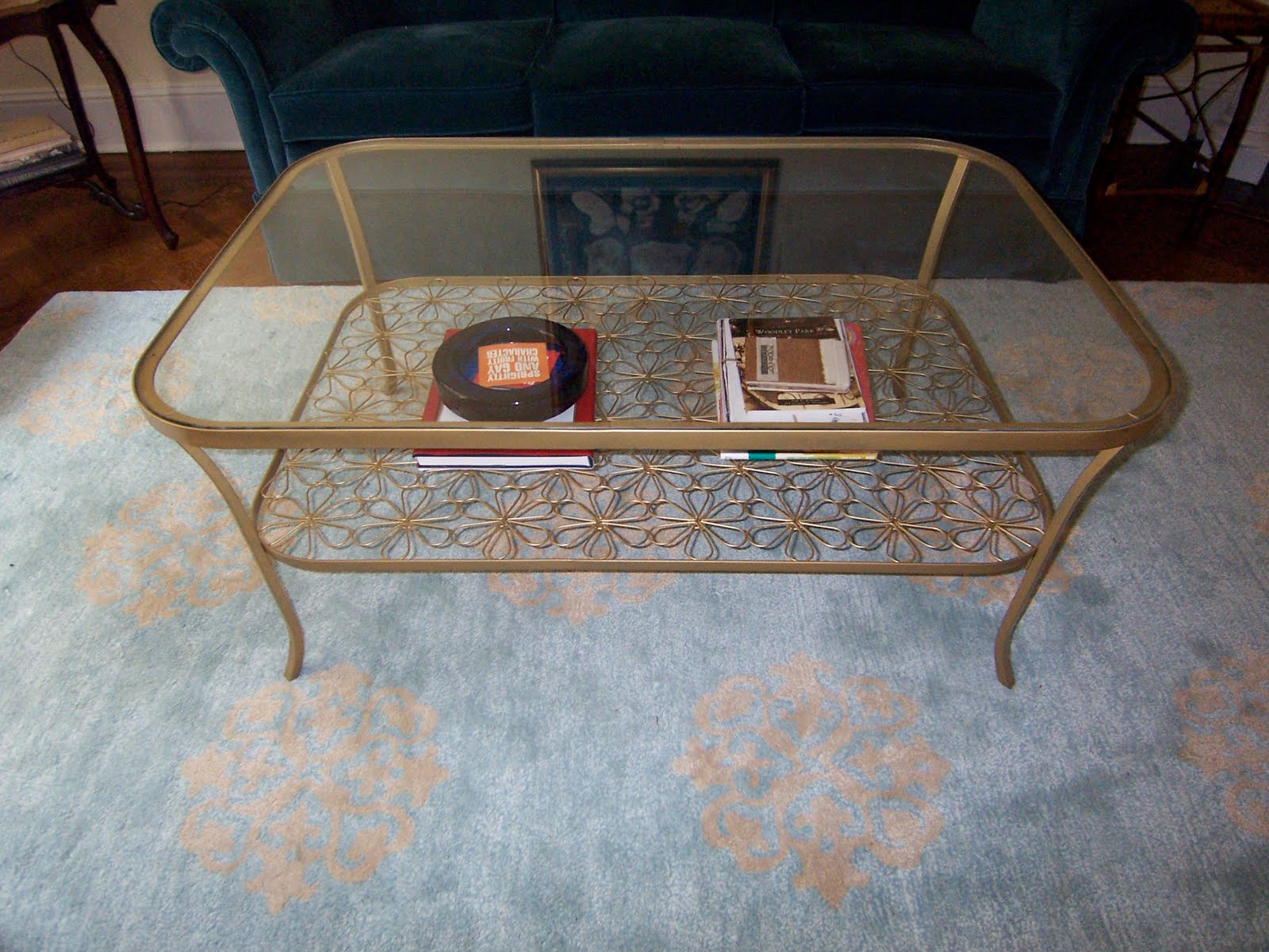 Of course, I’d forgotten that I HAD an iron and glass coffee table a million years ago. I salvaged it from a DC store called “Ruff ‘n Ready” and painstakingly painted it black and gold, got glass for it…I loved that darn coffee table. But we let it go a few years ago, which of course I totally regret now.
