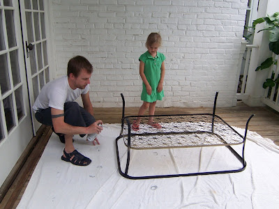 The Klingsbo coffee table. It wasn’t gold, but it what it WAS was 70 bucks. At that price, I could spring for a few cans of Rustoleum. My brother was still visiting; I couldn’t let all that manpower (Uncle-power) go to waste.