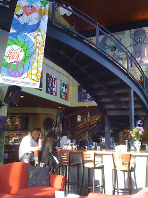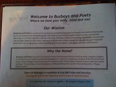 Like recently, when my husband and I went to Busboys & Poets in Mount Vernon Square. It’s a D.C.-based restaurant/free trade shop mini-chain with a hip, loyal following. I’d been to the one on 14th Street, but this one was even more interesting.