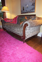So we rolled it up and marched it up the block, and lo and behold, it really worked. So there it lies proudly today, in front of a Victorian sofa and a modern oil painting. Fabulously.