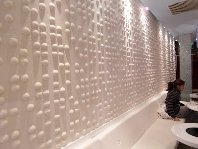 The longest wall is white and bumpy – it looks like mega-braille, actually. (Oh great. Now I can’t stop thinking about eyes in A Clockwork Orange.)
