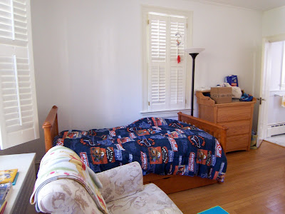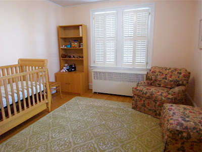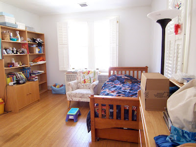 My clients’ 5-year old son graciously agreed to surrender his bedroom to his brand-new baby sister. (Don’t worry, he got pretty good digs on the 3rd floor.) Here’s the room when it was his: