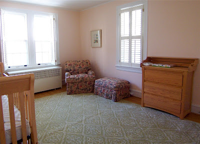 We had to get that chair some love. So we made it the starting point for the nursery. The delicate, “tea-stained” upholstery looks much more vibrant against peach walls. And it was free!