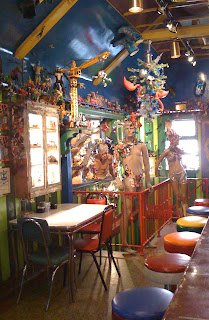 The mannequins and funhouse colors add to the slightly spooky aspect of the restaurant. This is not a place designed for kids, although you may not believe that until you experience it.
