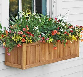 It would be worth asking a landscape person for some advice on the garden. At a minimum, I think it’s worth replacing your window boxes with natural wood or coco-moss to hit home the whole “country house” idea.