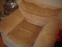 I was trying to think of what would go well with [the black kitchen counters and my tan couch, similar to the chair at right], and I can only think of some shade of red. Would that work and are there any other options? I was mulling over the idea about only accent painting the wall with the main window.