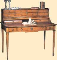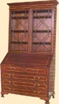 Empty room photo credit: Auris. Antiques photo credits (English Mahogany Inlaid Bookcase, Walnut Console Table, Directoire Rolltop Desk): Random Harvest.