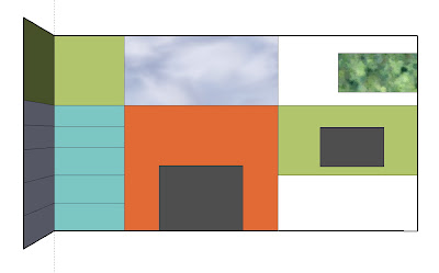 Let’s take a Mondrian approach to this, shall we? Different palette, same principle. In the fireplace picture, let’s imagine painting :