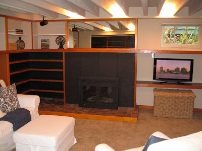 A: Dear Audrey: What an adorable house! In the basement, it would be fun to use a few different colors on the walls behind the shelves, leaving the trim natural wood.