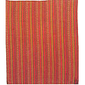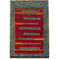 If you had sent me only a picture of the art, I would have guessed that your furniture was dark brown or black leather, low-slung, boxy, possibly mid-century, possibly with some teak involved… In that case, I would have recommended a “tribal” rug, such as a Gabbeh – this particular one isn’t the right size, but the design is great – or