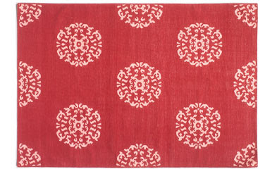 Our second challenge, which is adding a dash of modern. You could use a traditional deep red Oriental or Persian rug in here, and it would look lovely. But we don’t want your house to feel like a museum. (Or maybe you do, but you shouldn’t. You’re too young and cool.)