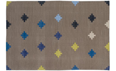 Naturally, I’d love to see you go all out with a contrasting color to jazz things up. Madeleine Weinrib Atelier is the place to go for beautiful, colorful cotton flatweaves. (Dash & Albert is great for cotton stripes, but that’s too beachy for you.)