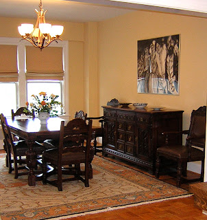 Please don’t get me started on the colors (or faux fruit garlands on the window); there is no era in which this color combo would have been a good idea. (I take it back: late 60s?) Just note that this person set off the shadow box moulding with contrasting (green) paint. I didn’t see this room furnished, so I’m not sure what hung on the walls.