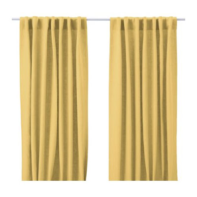 Barring that, let’s just do yellow drapes however we can find them: cotton, linen, velvet…I don’t care. Hello – a pair from Ikea just waltzed in.
