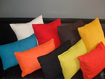 After that, I suggest buying white bedding, hanging your art, and then filling in color gaps – orange, brown – with pillows on your bed. The nubby fabric on these Modern Materials Design pillows has a mid-century feel…and naturally I love the bold colors:
